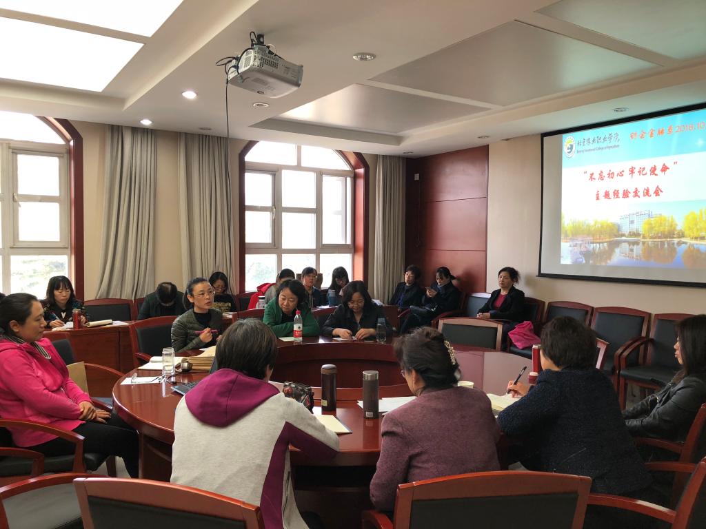 10月12日下午,财金系组织召开了“不忘初心、牢记使命”主题教育之教师经验交流会,会议由系党总支书记敬燕萍主持,财金系全体教工参加了交流活动。