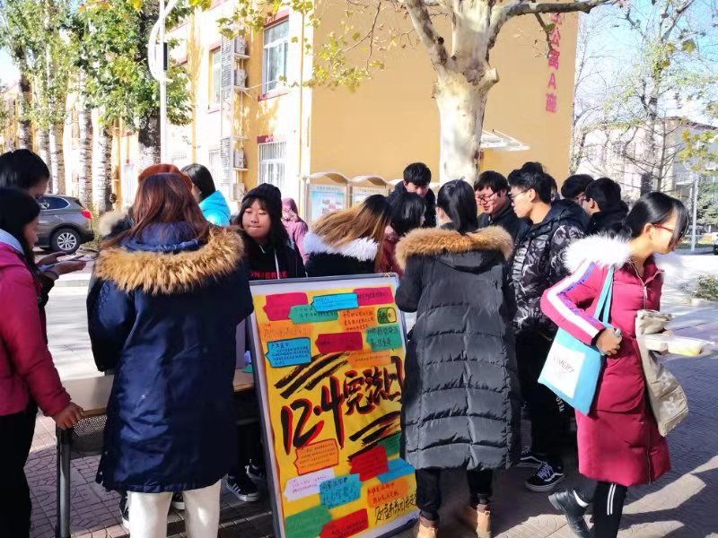 为深化宪法教育,普及法律知识,帮助学生树立“尊崇宪法、学习宪法、遵守宪法、维护宪法、运用宪法”的意识,财金系紧紧围绕院团委宣传宪法活动要求,在系团总支同一安排部署下,组建以法律1711班为主的宪法宣传小队,积极开展系列宪法宣传周活动。