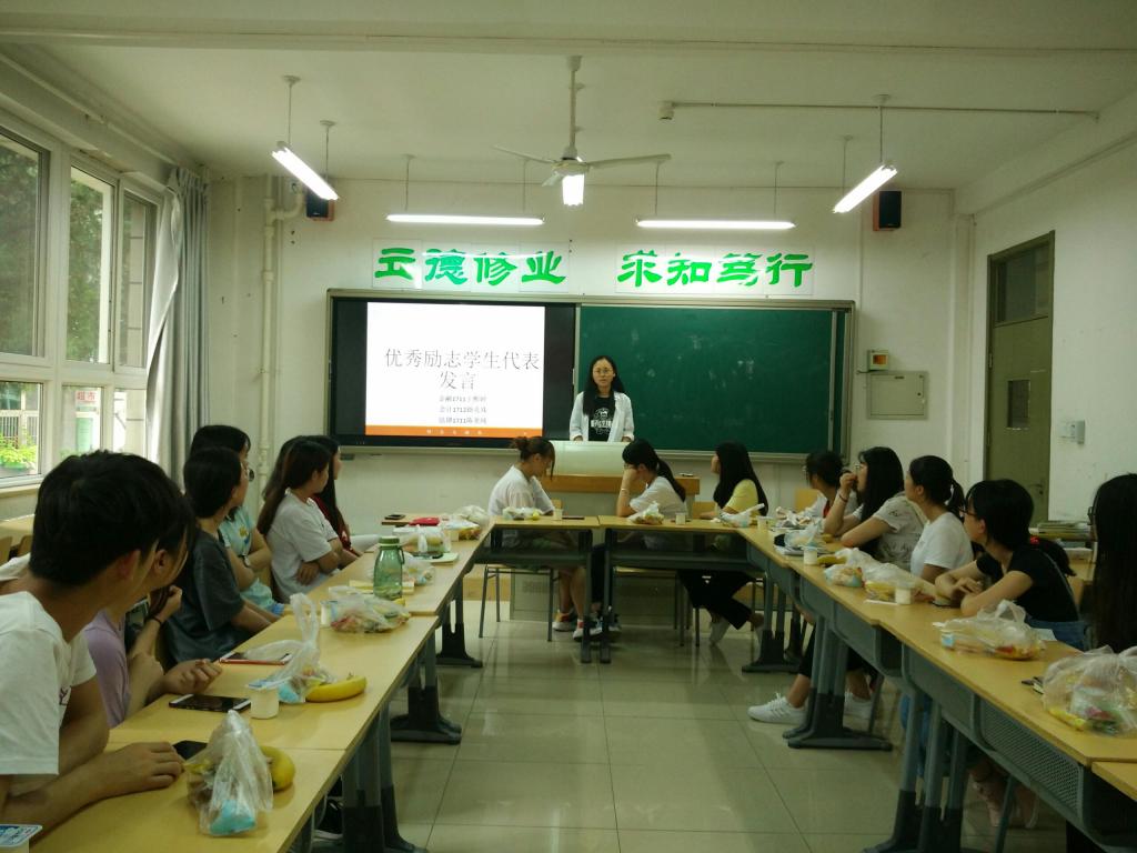 6月19日,财金系组织全系获得资助的学生参加“助学诚信圆梦感恩”主题班会。