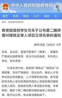 为落实党中央、国务院“稳就业”“保就业”决策部署,深化产教融合、校企合作,推动人才培养与就业有机联动、人才供需有效对接,教育部高校学生司组织有关用人单位和高校持续深入实施供需对接就业育人项目。我院会展专业与中青旅博汇(北京)会展运营管理有限公司共建的供需对接就业育人项目顺利通过审批,获准立项。