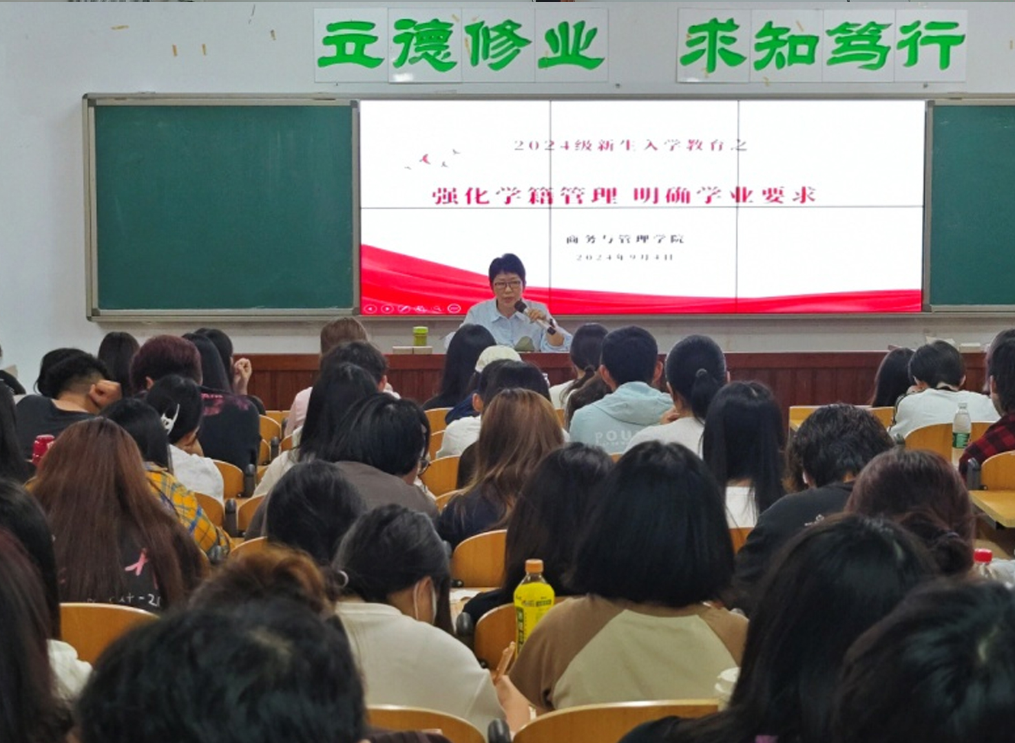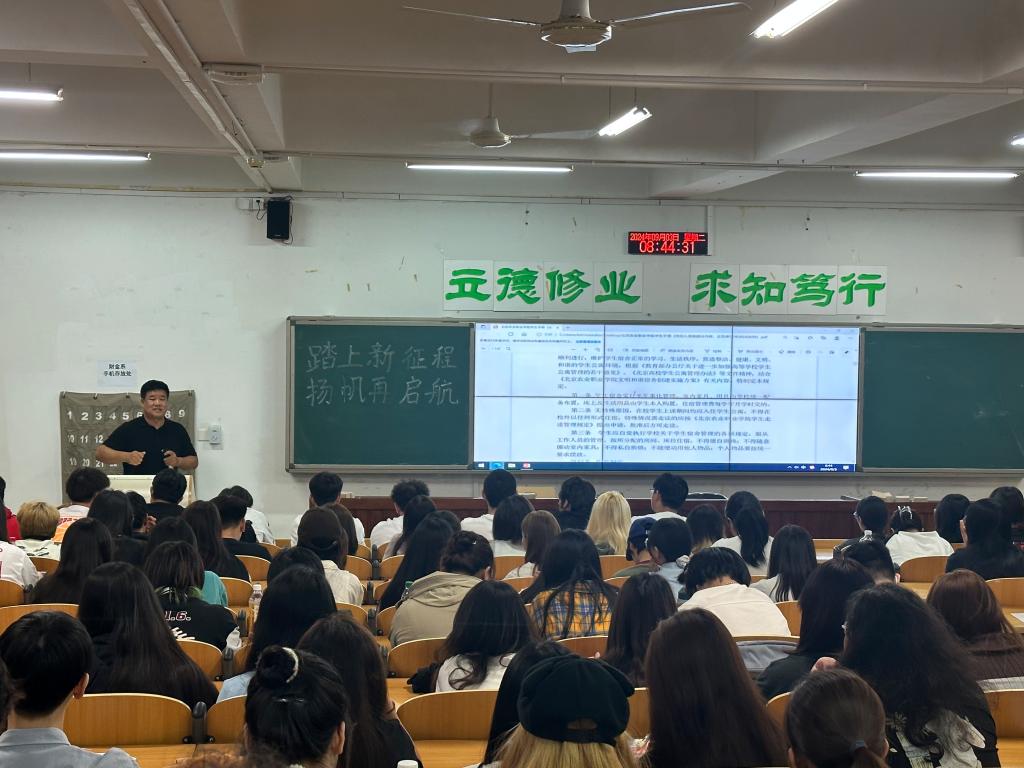 学生工作部心理素质发展与指导中心陈新老师以“新学期 ‘心’启航”为主题,为同学们进行了专题辅导。商管院教科研工作办公室主任卢爱军详细为同学们介绍了学籍与教学管理规定。