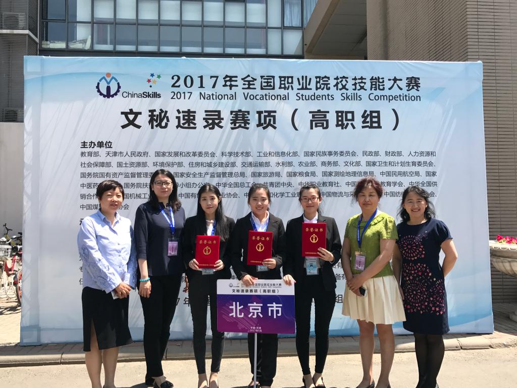 2017年5月8日至10日,全国职业院校技能大赛文秘速录赛项在天津职业大学举行。我院财会金融系法律文秘专业指导教师李昕萌、王瑞玲,参赛选手李秋月、刘燕雪、高美组成的代表队代表北京市参赛,获得三等奖的好成绩。