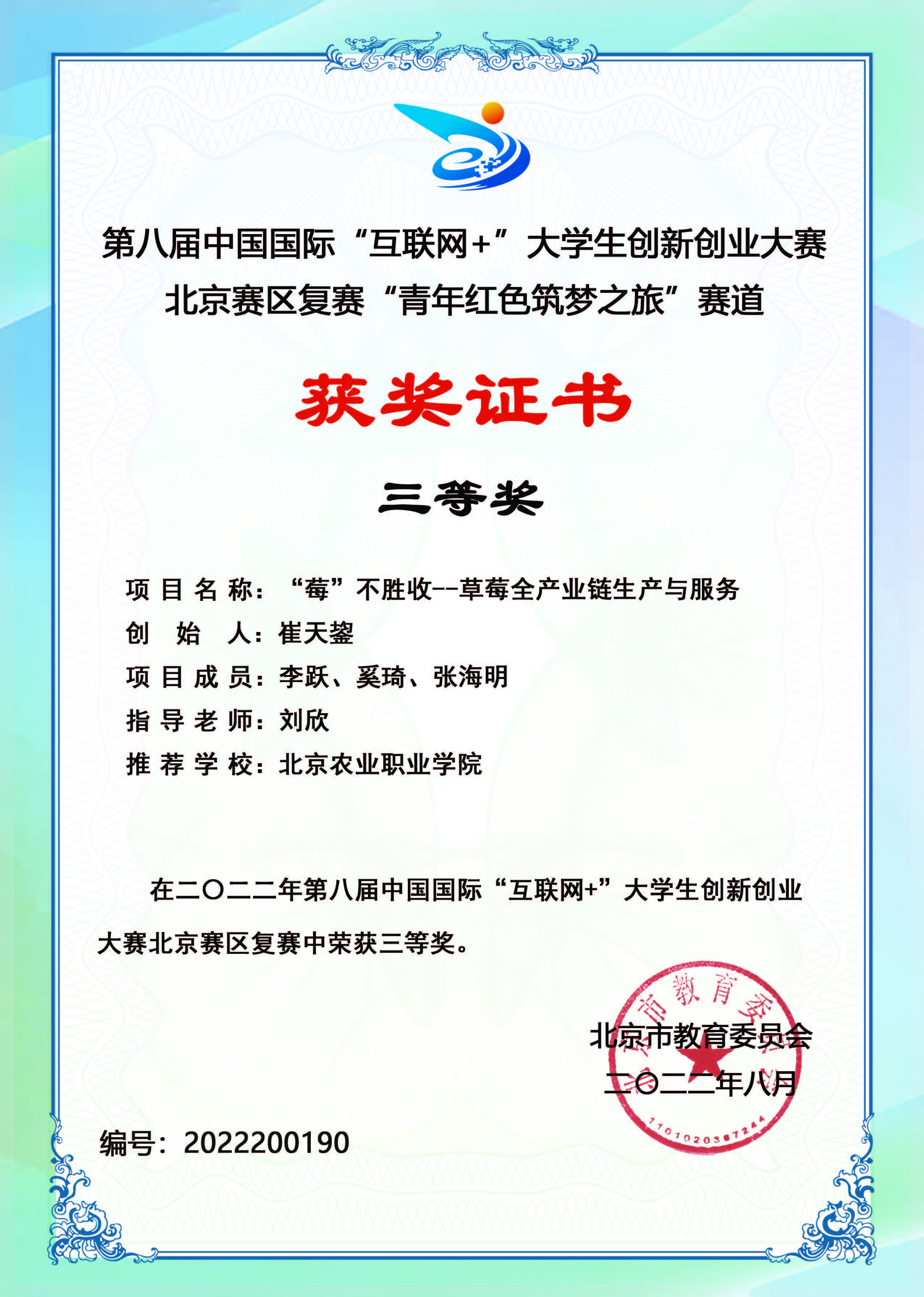 第八届中国国际“互联网+”大学生创新创业大赛北京赛区三等奖