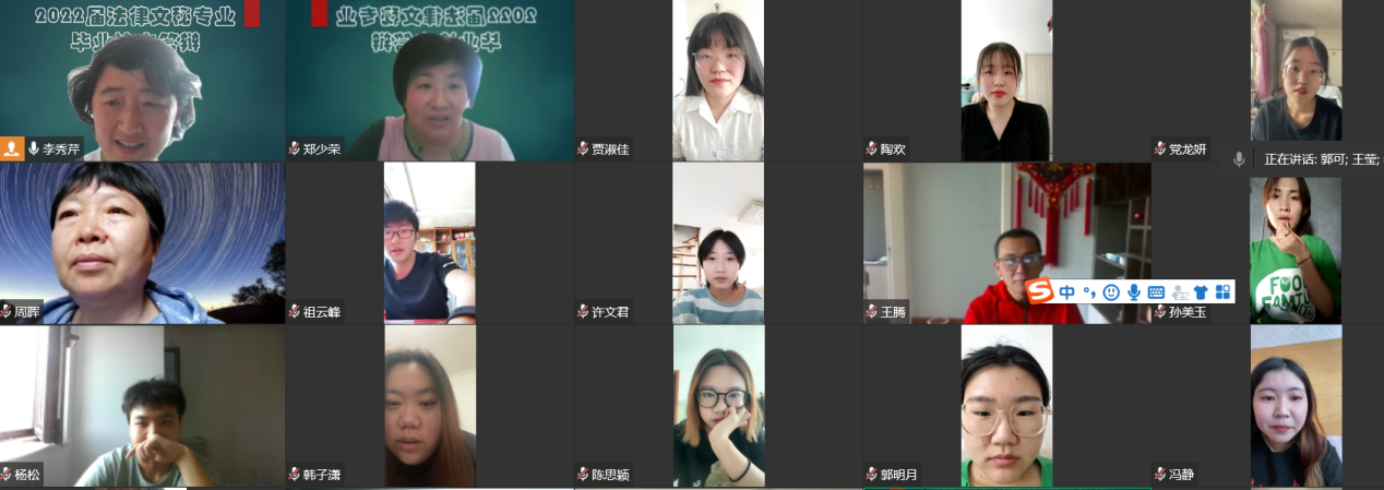 2022年5月20日下午,按照学院疫情防控工作要求,法律文秘专业组织法律1911班在企业微信会议上举行毕业论文答辩。