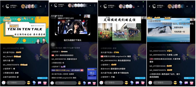 6月18日,在青年世代高度聚集的视频平台哔哩哔哩(bilibili)项目团队完成了最终的线上直播展示环节《TEN IN TEN TALK——生而强悍,探索不止》主题演讲活动。三位演讲嘉宾以“特立独行的爱好,要不要坚持?”为主题,分别从电竞、足球、滑雪三项爱好上展现了青年人在追逐自己爱好的道路上被阻拦的困难和坚持成功后的喜悦,阐述了青年一代的理想与抱负。直播活动充分展示了我院学生丰富多彩的“追爱”人生,为直播观众传递了当代青年群体的正能量,从理想与现实两个维度圆满完成展示活动。这不仅仅是一次对知行合一素养的考验,更是一次对学生们学习成果、专业创新能力的培养与挑战。