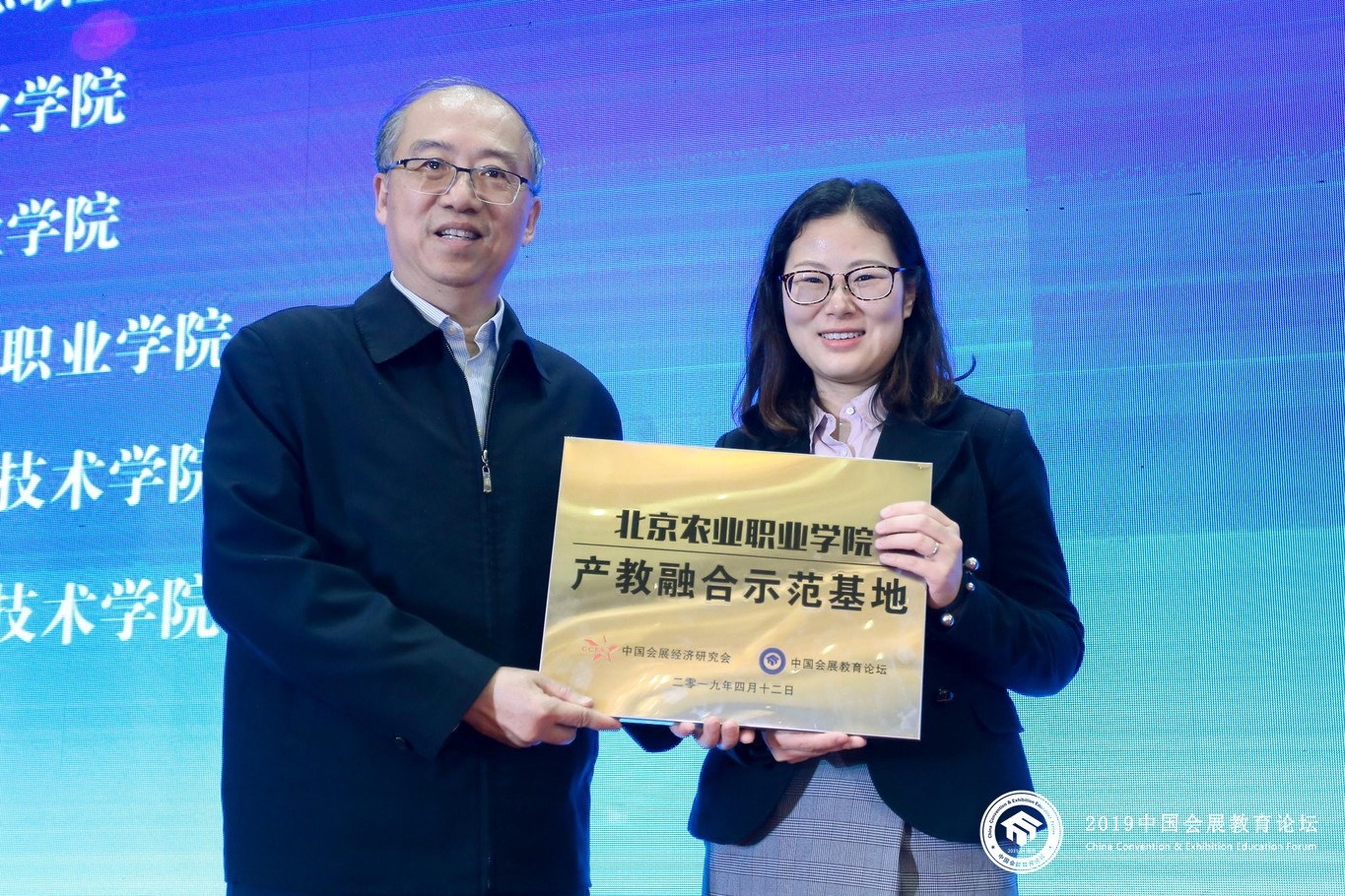 我院现代系会展策划与管理专业建立以来一直以打造学业生职业技能为核心,积极开展实践教学活动,不断拓展校外实践基地,与北京都市农业紧密结合,打造专业特色,促进产教融合,在此次年会和论坛活动中,我院被“中国会展经济研究会”与“中国会展教育论坛”联合授予“产教融合示范基地”,并被连续4年授予“年度优秀会展院校”。