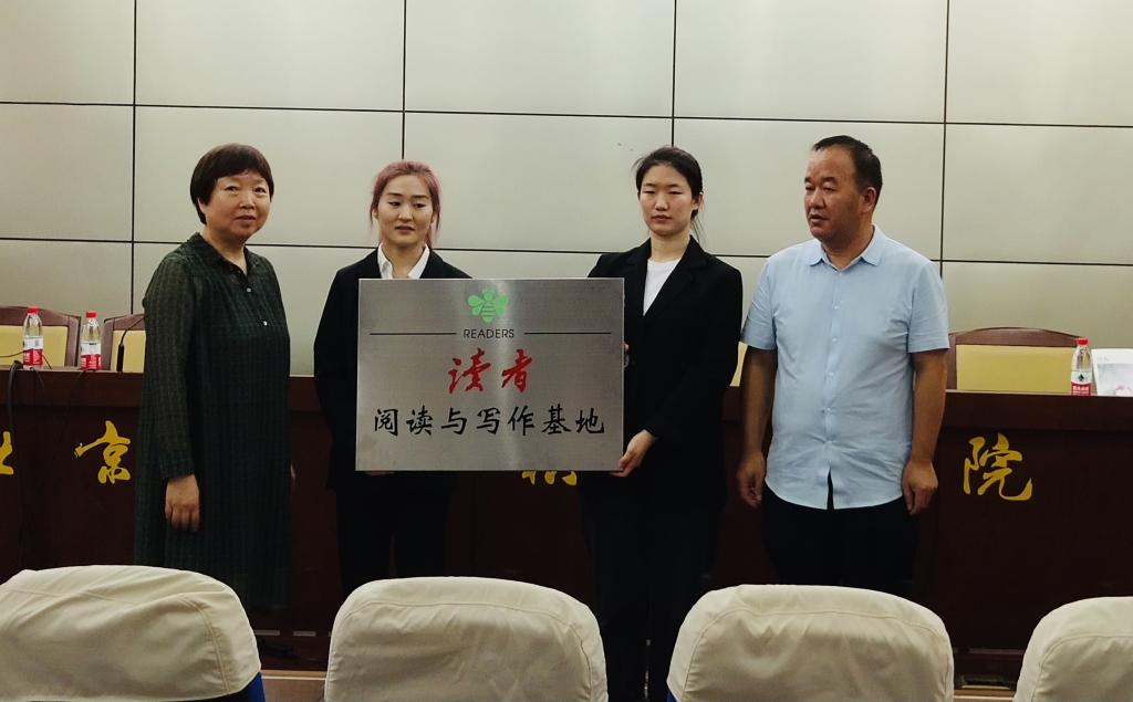 《读者》杂志多年以来始终以弘扬人类优秀文化为己任,坚持“博采中外、荟萃精华、启迪思想、开阔眼界”的办刊宗旨,赢得了各个年龄段和不同阶层读者的喜爱与拥护,被誉为“中国人的心灵读本”、“中国期刊第一品牌”。《读者》阅读与写作基地的建立,对宏扬我院“耕读传家”德育品牌,通过“读”加强学生思想引领、加大文化育人力度起到推动作用。