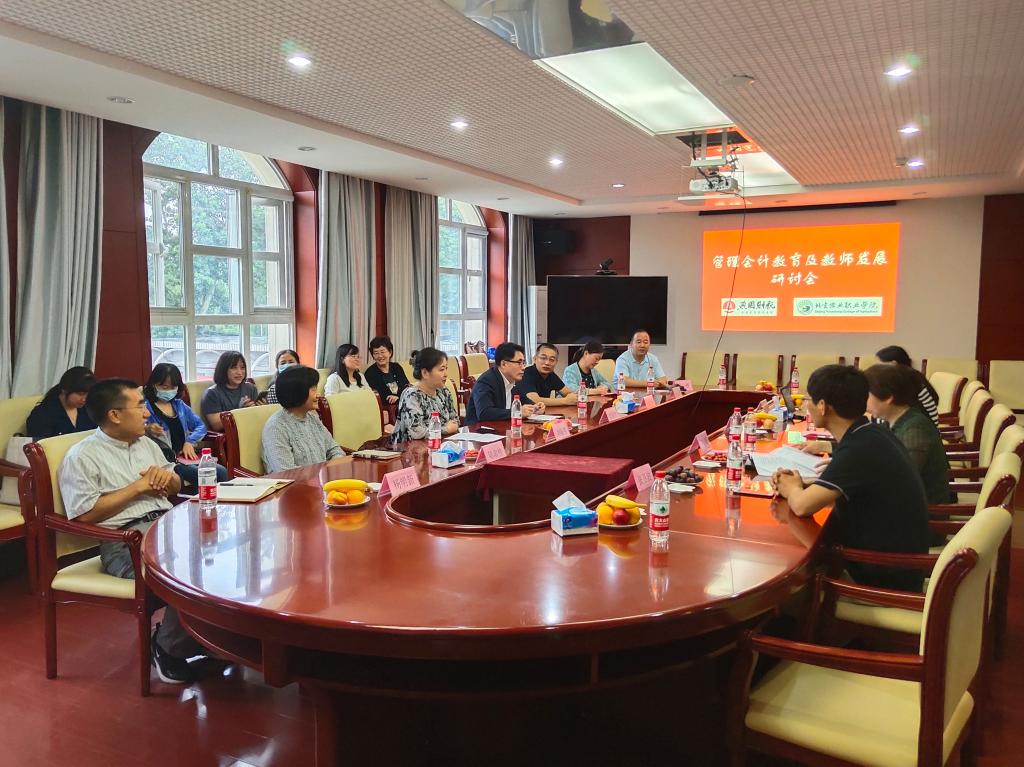 揭牌仪式后,全体人员共聚一堂召开了研讨会,燕园财税集团总裁、财金系副主任、企业CFO、职业院校会计专业负责人、财金系党总支书记相继发言,畅谈管理会计教育及教师发展,对管理会计教师实践发展中心的下一步工作达成了共识。
