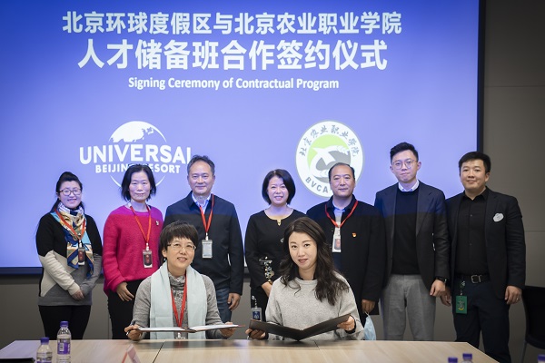 12月10日,现代服务管理系与北京环球度假区签订了“北京环球度假区人才储备班”。学院院级领导王晓华、招生就业处处长徐洪飞、现代服务管理系主任何艳琳、副主任贾艳琼、教务处副处长张红以及北京环球度假区高级副总裁尹冬梅、人才招聘总监付颖、校园总监郭心炜、校园招聘经理任小超等出席了此次签约仪式。
