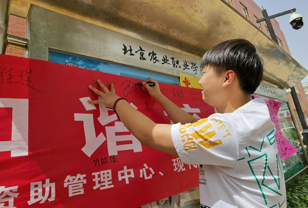 活动现场气氛热烈,同学咨询、领取材料踊跃。学工部蔡乐老师、系学办杨松、于尧老师在现场为学生普及了相关金融政策和法律知识,帮助同学们认识到“校园贷”的巨大危害。系团学组织成员向往来学生发放宣传资料800余份,同学们纷纷在“远离校园贷,共建和谐校园”的横幅标语上签下姓名,并表示在校园生活中,将树立正确的价值观、消费观,提高对“校园贷”“套路贷”的辨识能力,不让“校园贷”给青春蒙上阴影。