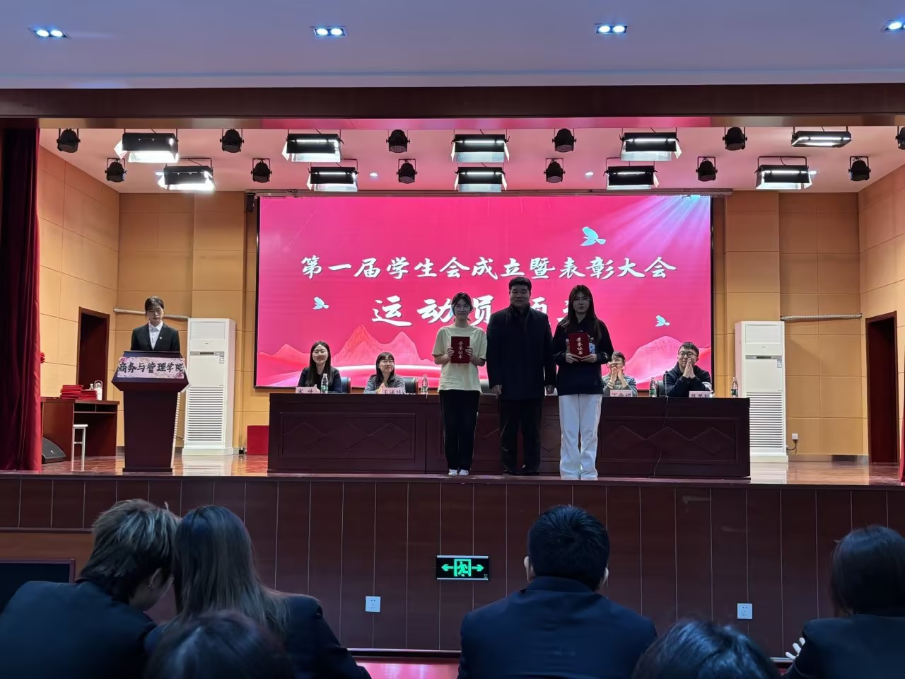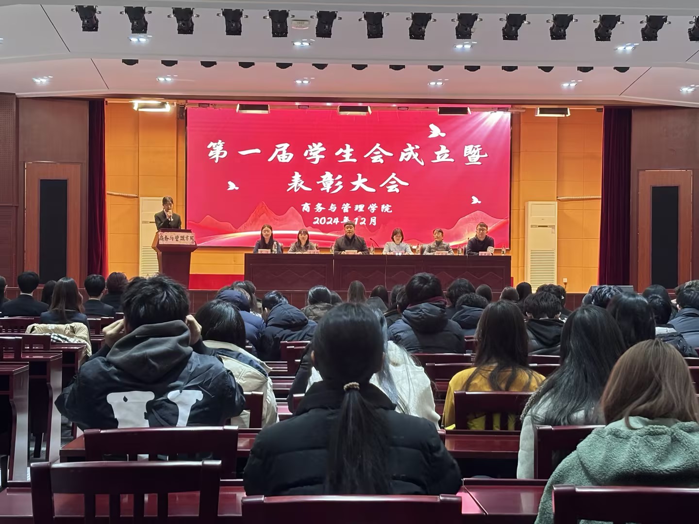 为凝聚商务与管理学院青年学生力量,巩固融合教育成果,选树典型、表彰先进,12月17日下午,商务与管理学院首届学生会成立大会暨表彰大会在图书馆三层报告厅隆重召开。学院党总支副书记徐浩、学生工作办公室主任张雪清、全体辅导员老师、学生会全体成员以及各班学生代表齐聚一堂,共同见证这一重要时刻。学院团总支副书记刘蕾同学主持。