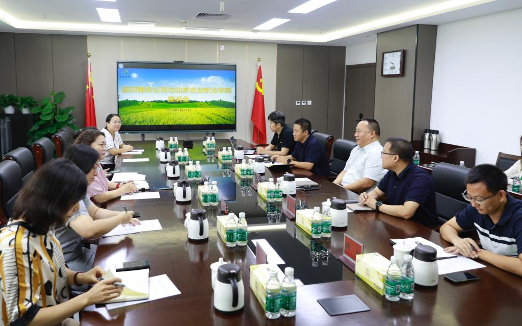 会上,董事长王风光就运河惠农公司成立背景、发展方向及未来合作战略进行了介绍和交流。总经理夏剑峰分别就“京农·运河人家”品牌活动开展、“两高一智"高标准农田的经营生产以及高标准农田基础设施建设等情况进行介绍,找准新质生产力发展关键突破口,期待与学院在重点项目上有进一步的合作。