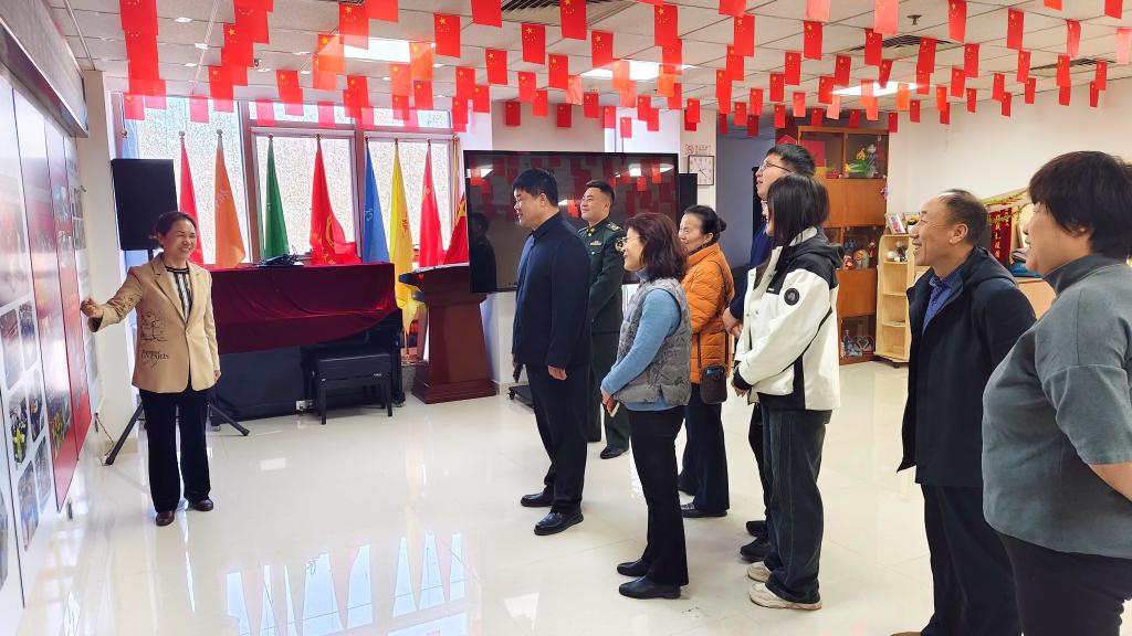 王春红带领大家参观了促进中心各个服务版块内容,从中心的布局布置、志愿服务照片墙及项目展示、党建读书角、志愿成果荣誉陈列柜、图书馆到各个市民服务设施小细节,无不体现着青龙桥街道“奉献、友爱、互助、进步”志愿精神和深厚的志愿文化底蕴。参观结束后双方召开了以“智慧助老,志愿相伴”为主题的座谈会。会上,王春红对参会的街道下属军科社区、丰户营干休所、遗光寺社区、娘娘府干休所等四个社区做了介绍,社区中大部分居住者都是老年人,服务需求主要集中在数字智能应用和老人情感关怀两个方面,这些老人中有50多位平均年龄超90岁的老军人,他们曾是八路军参与过解放战争,也有的是志愿军曾参与过抗美援朝,是最可爱、最可敬的人。随后徐浩介绍了学校的办学历史及三大基因,能为这些老军人提供志愿服务正是我们传承和弘扬红色基因的深刻实践。会上校社双方围绕“追寻红色足迹”“科技赋能助老”“情感陪伴”等内容展开深入探讨,并共同拟定了切实可行的志愿服务方案,并就建立“服务-反馈-优化”长效机制达成了共识。
