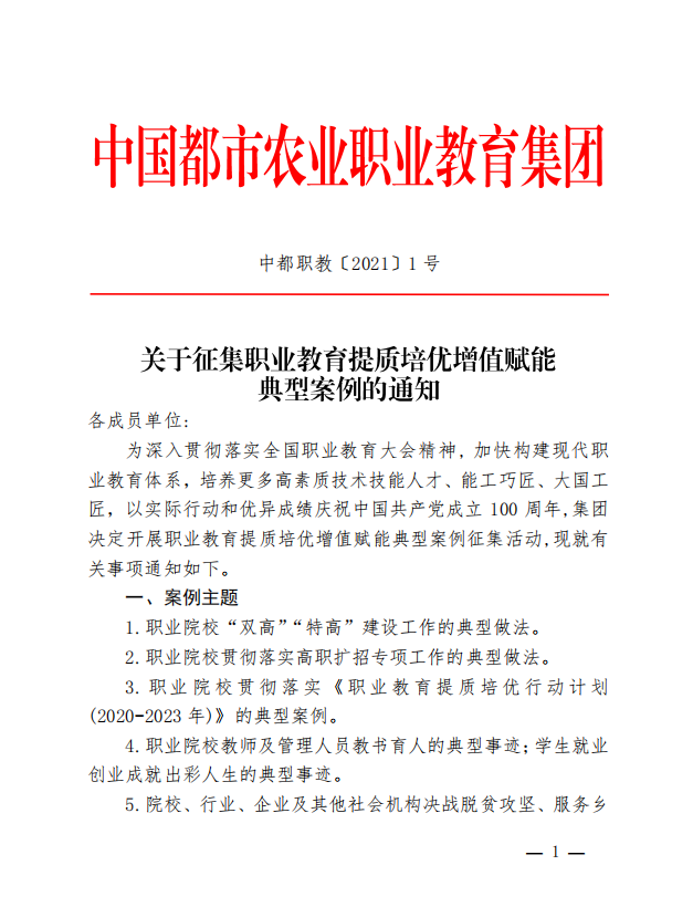 中国都市农业职业教育集团关于征集职业教育提质培优增值赋能典型案例的通知