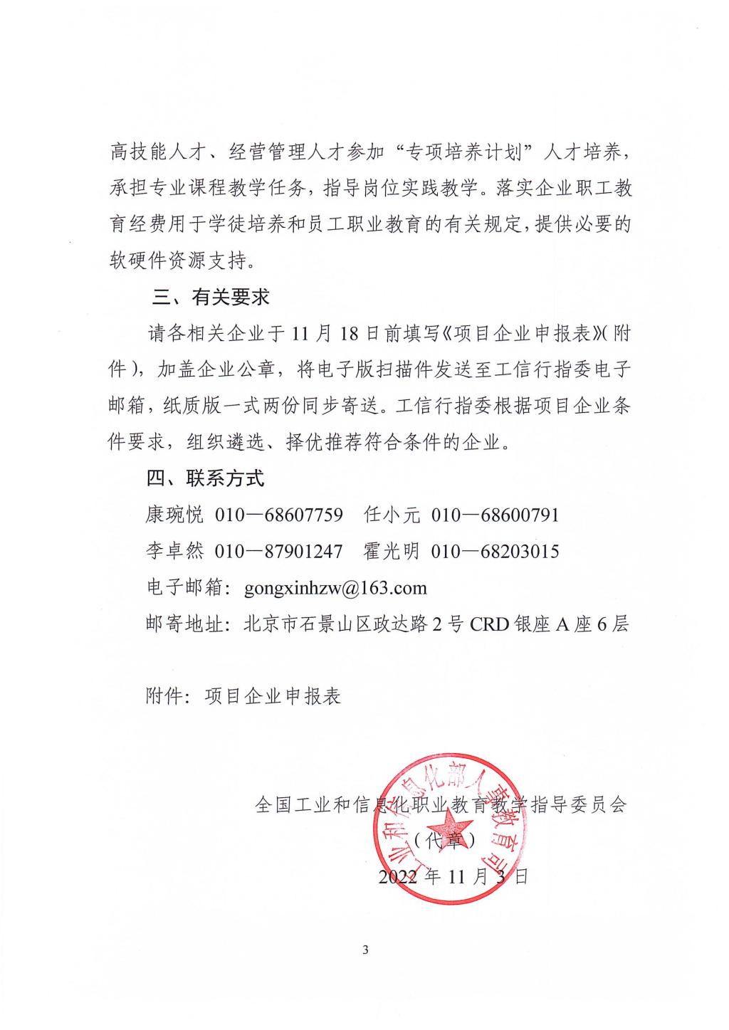 全国工业和信息化职业教育教学指导委员会关于开展职业教育现场工程师专项培养计划第一批项目企业遴选推荐工作的通知