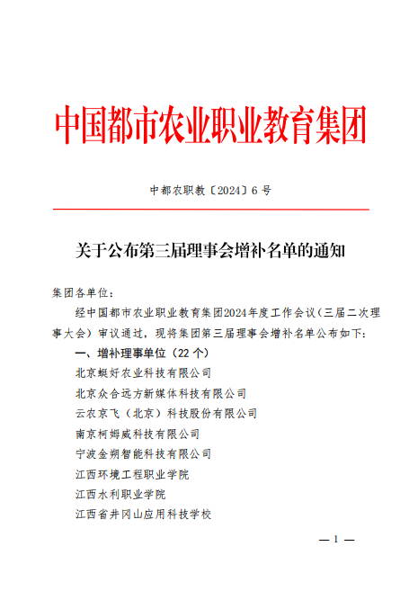 中国都市农业职业教育集团关于公布第三届理事会增补名单的通知