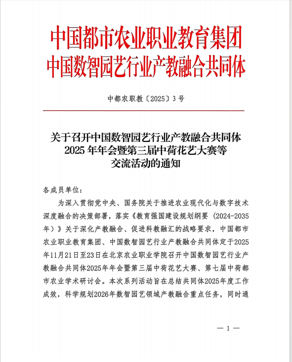 中国都市农业职业教育集团关于召开中国数智园艺行业产教融合共同体2025年年会暨第三届中荷花艺大赛等交流活动的通知