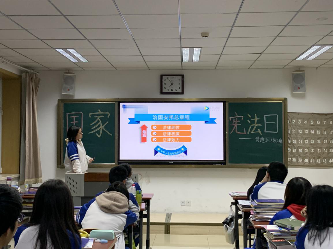 以班级为单位召开“国家宪法日”主题班会,帮助学生了解宪法知识,树立法治观念,增强学生运用法律自我保护的意识。