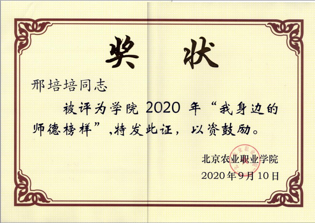 (邢培培)我身边的师德榜样奖状