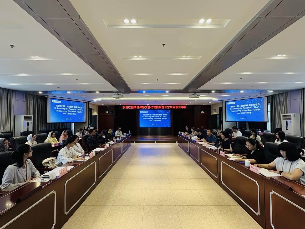 7月3日,受北京市对外友好协会(以下简称市对外友协)委托,学校成功组织中巴“绽放她力量:赋能教育.健康.领导力”交流活动。巴基斯坦俾路支省“Z 世代”青年代表、学校教师代表、学生代表等参加。学校党委常委、副校长谷天刚出席活动并致辞,市对外友协亚洲工作部部长郑顺梅等相关同志参加,会议由国际合作与交流处处长张红主持。