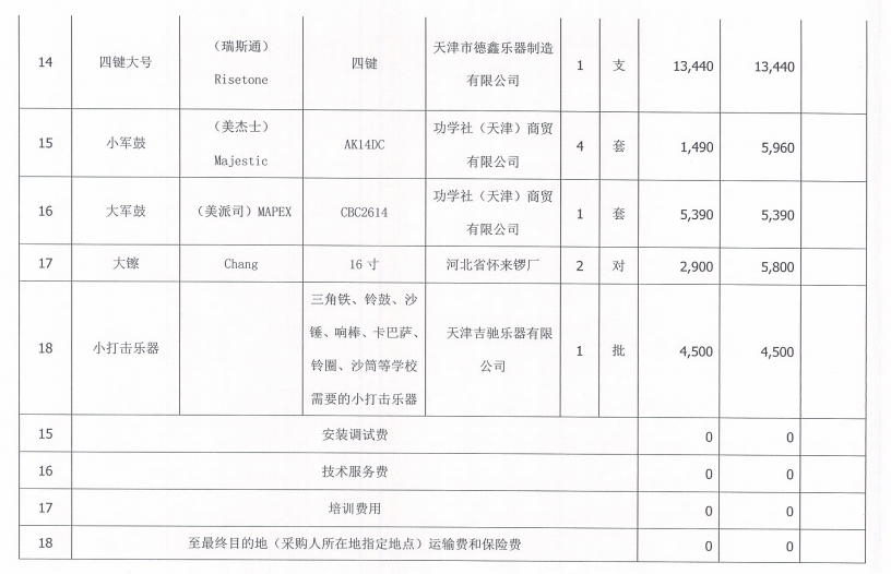 二、项目名称:beat365官方网站北苑校区购置乐团演奏乐器项目