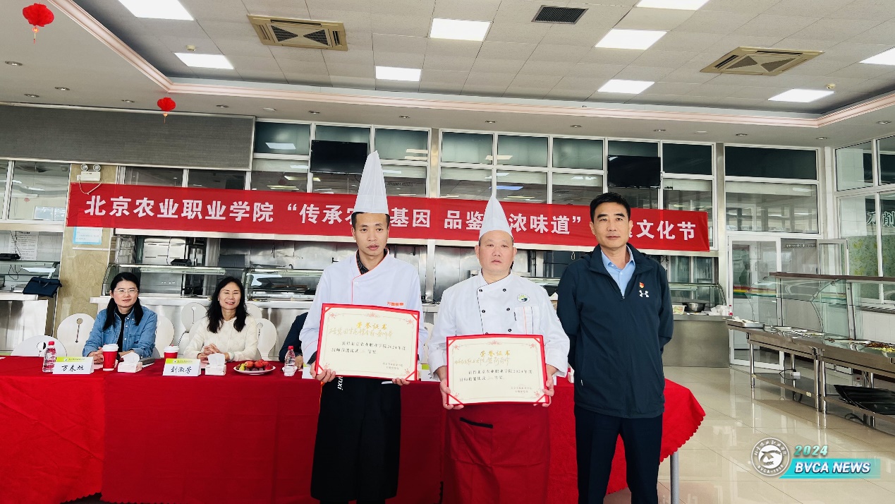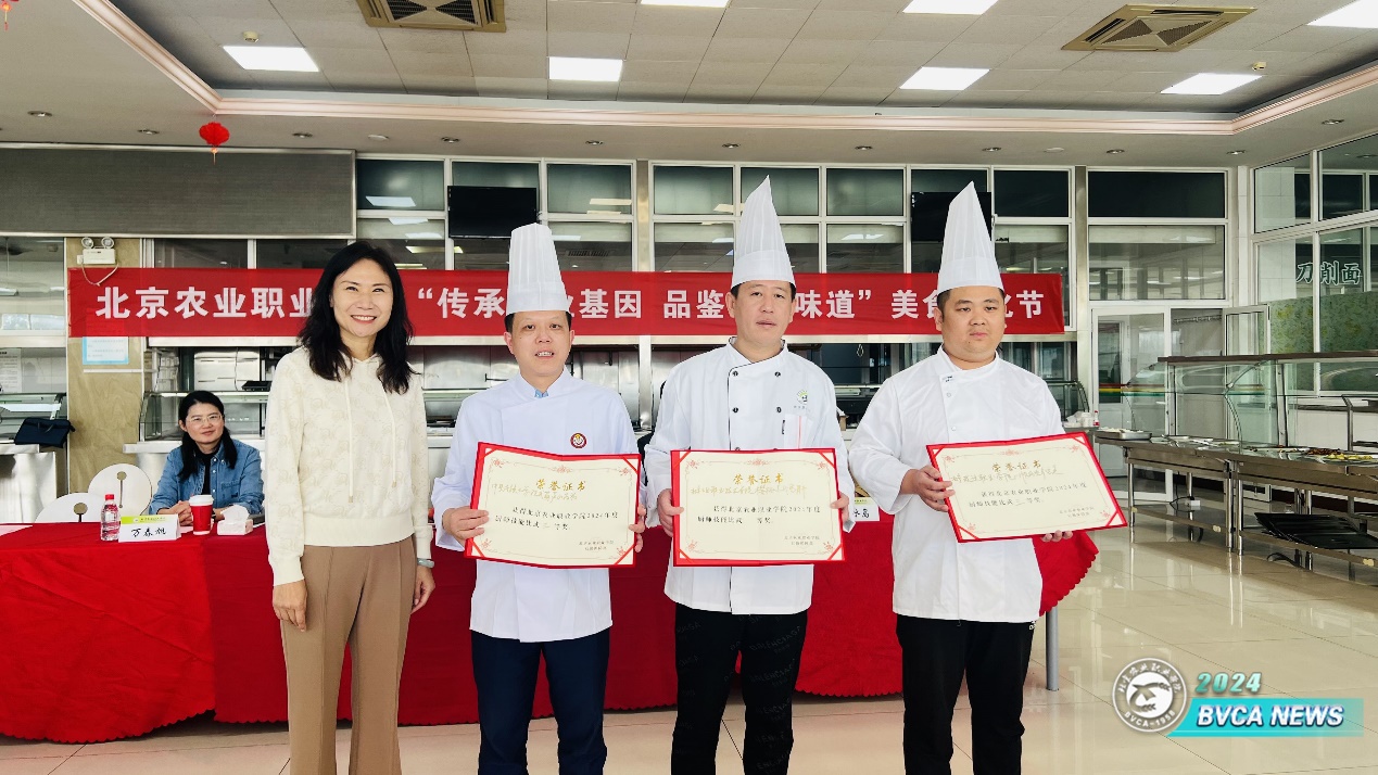 本届美食节以“传承农业基因 品鉴勤浓味道”为主题,汇聚3个厨师团队、4家友情学校、多家企业联手打造美食展示与技能比武。活动特别邀请来自中央民族大学、北京信息科技大学、北京工业职业技术学院、北京政法职业学院的厨师进行技能展示。活动现场,厨师们比拼技艺、展示风采、交流经验,现场烹饪色、香、味俱佳的各式菜品,师生评委们逐一品鉴、认真打分,经过紧张激烈的比拼,最终北京信息科技大学的菜品“龙游四海”以师生的高认可度喜获一等奖,另外三所高校分别荣获二等奖和三等奖。