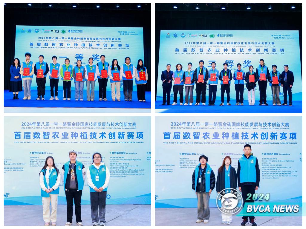 11月21日至24日,2024年第八届“一带一路”暨金砖国家技能发展与技术创新大赛—首届数智农业种植技术创新赛项全国总决赛在上海农林职业技术学院成功举办。园艺园林学院张海娇老师、实验实训中心李佳蔚老师指导的高职组学生团队荣获一等奖,园艺园林学院刘继伟、王浩然老师指导的中职组学生团队荣获三等奖。