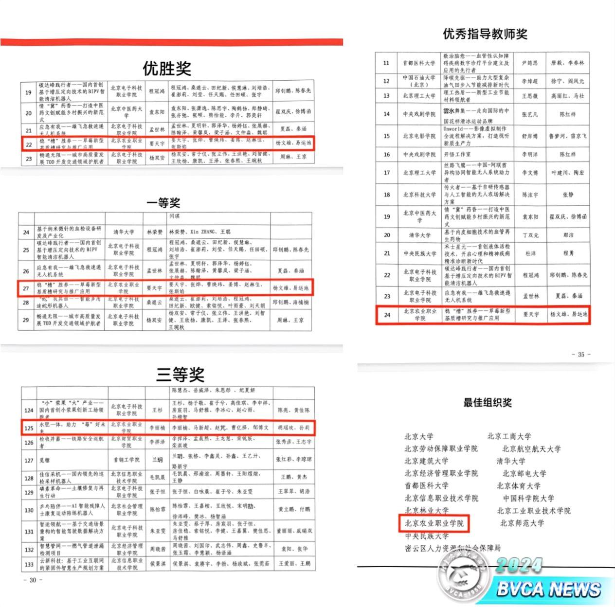近日,由北京市教育委员会、北京市人力资源和社会保障局、北京市发展和改革委员会共同主办,北京高校大学生就业创业指导中心承办的第三届“京彩大创”北京大学生创新创业大赛圆满结束,beat365《稳“槽”胜券——草莓新型基质槽研究与推广应用》项目荣获市级优胜奖、现场决赛一等奖,杨文雄、易运池老师荣获最佳指导教师,《水肥一体,助力“苺”好未来》项目荣获现场决赛三等奖,11支项目团队获得百强创业团队称号,学校荣获最佳组织奖。
