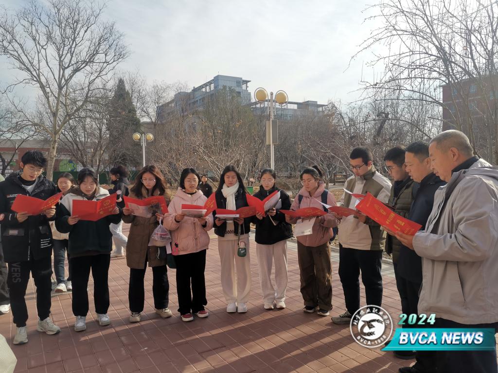 本次活动通过竞猜答题、宪法诵读等多种形式宣传宪法知识。在竞猜答题环节,参与师生随机抽取题目进行回答,在思考中重温了宪法知识。在宪法诵读环节,随机组队的师生齐声诵读部分宪法条文。活动现场,同学们里三层外三层,答题、诵读、领奖、欢呼,气氛热烈,高潮迭起。临时组成的小团队在冬日的暖阳里齐声诵读宪法条文,青春的风采在琅琅的书声中凝聚飞扬,相信法治信仰的种子也在萌芽迸发。