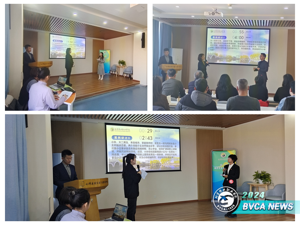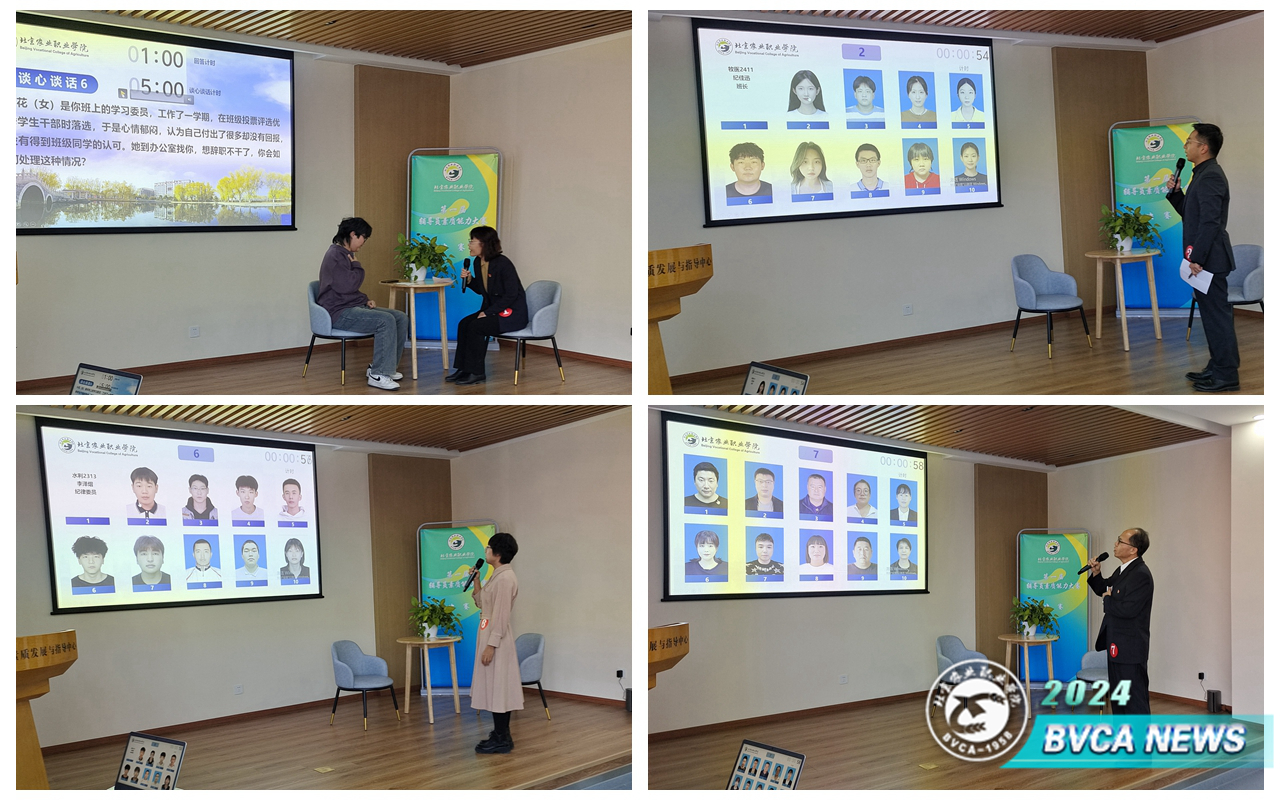 决赛设有案例研讨、学生辨识、谈心谈话三个环节。案例研讨中,选手两人一组,以AB角互换方式共同剖析案例中的矛盾焦点,深入探讨解决策略,展现出良好的现场应变和逻辑思辨能力。学生辨识中,每位选手需辨识10名随机抽取的所带班级学生,准确回答出学生基本情况。谈心谈话中,以情景再现的方式还原了辅导员现实工作中与学生交流的场景,展现了辅导员在学生工作中的专业素养和实践能力。