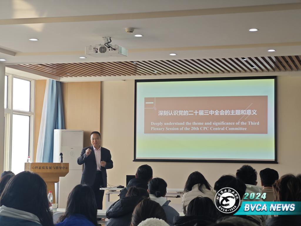 12月20日,学校党委副书记、院长张德强到园艺园林学院宣讲党的二十届三中全会精神,为园艺2411班学生讲授专题思政课。