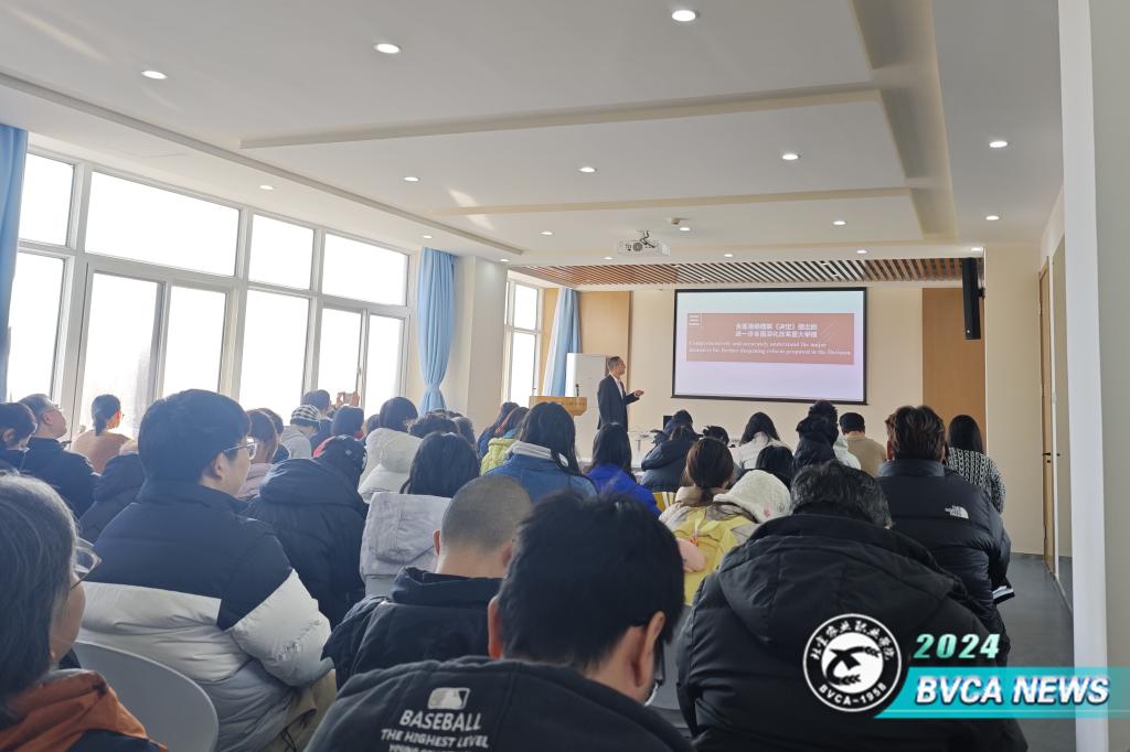 张德强以“深入学习贯彻党的二十届三中全会精神,持续推动beat365院高质量发展”为主题,从四个方面与老师和同学们进行交流。一是深刻认识党的二十届三中全会的主题和意义。二是进一步深刻认识全面深化改革的指导思想、总目标和原则。三是全面准确理解《决定》提出的进一步全面深化改革的重大举措。四是严格贯彻落实全会精神的基本要求,奋力书写中国式现代化的北京beat365新篇章。