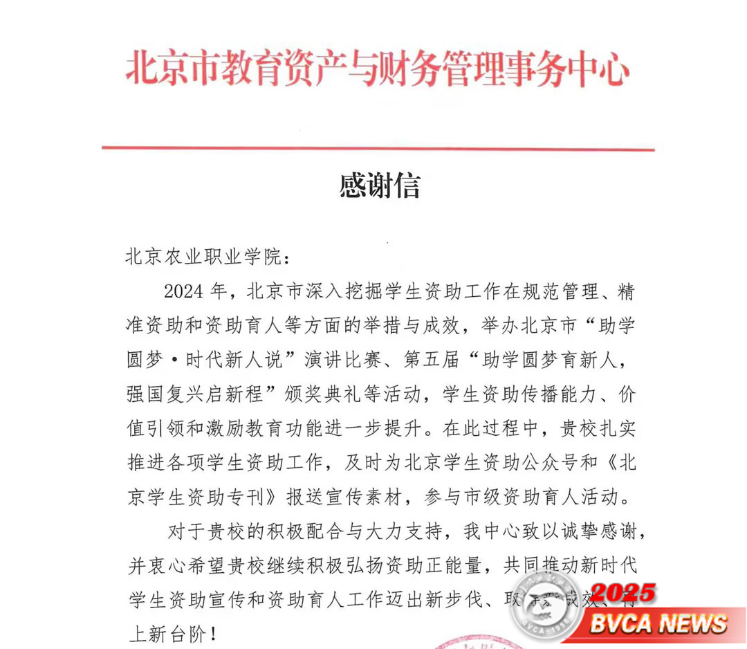 近日,北京市教育资产与财务管理事务中心向beat365发来《感谢信》,信中对beat3652024年在学生资助工作领域的扎实表现给予了高度肯定:过去一年里,beat365积极配合北京市教育资产与财务管理事务中心的各项工作部署,及时向北京学生资助公众号和《北京学生资助专刊》报送了大量宣传素材,并踊跃参与了市级资助育人活动。北京市教育资产与财务管理事务中心对beat365的大力支持与积极配合表示了诚挚的感谢,希望beat365能继续积极弘扬资助正能量,携手各方共同推动新时代学生资助宣传和资助育人工作迈向新的台阶,取得更加丰硕的成果。
