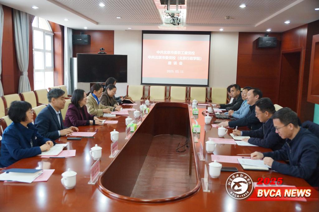 党校工作部主任梁秀文简要汇报了农工委党校办学的基本情况和办学特色。市委党校培训处处长李爱华介绍了两校合作办学的意向。农工委组织处处长顾崇华表示,两校合作办学经农工委和市委党校相关领导前期沟通已初步达成共识,农工委将全力以赴给予支持,希望通过校际合作培训的机遇宣传推广乡村振兴的北京经验。