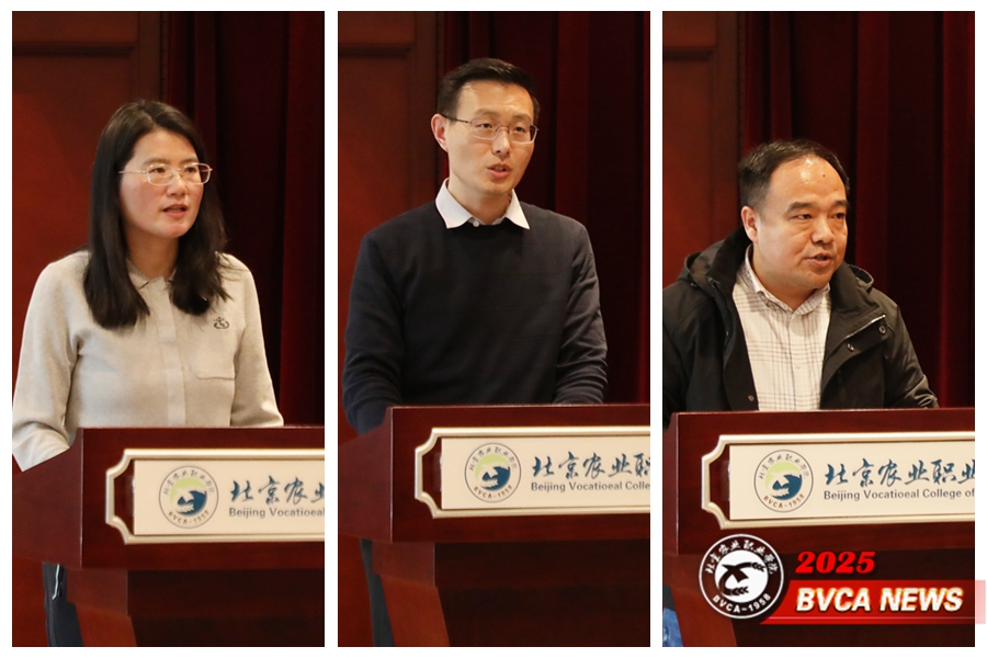 鲁雷宣读2024年就业创业工作先进集体与先进个人名单。园艺园林学院院长汤久杨、智慧农业工程学院院长万春旭、动物科技学院宠物医学系主任张晓远、水利与土木工程学院学办主任张文培、商务与管理学院辅导员严英强、新目标教育集团总经理杜娟娟做典型发言,分享特色做法。