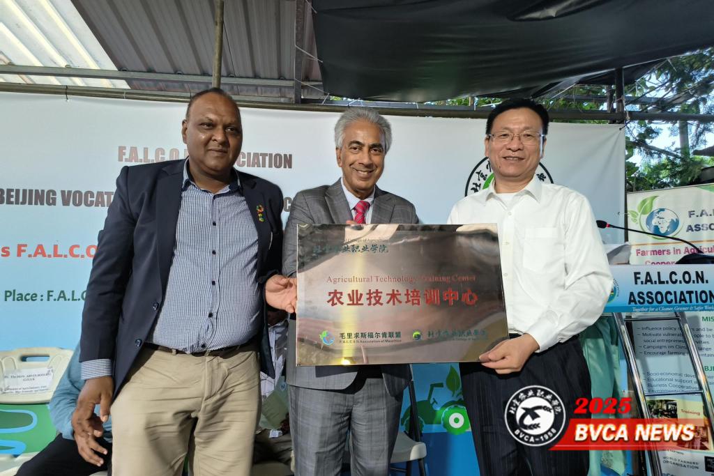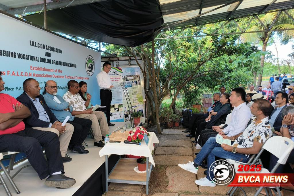 在毛里求斯,访问团首站与福尔肯联盟举行隆重的“beat365官方网站-毛里求斯福尔肯联盟海外农业技术培训中心”授牌仪式,谷天刚为福尔肯联盟授牌,并发表致辞,双方签署海外农业技术培训中心合作协议,标志着双方在农业技术培训、人才本土化培养领域的合作进入新阶段。毛里求斯农业产业、食品安全、蓝色经济和渔业部部长阿尔文.布勒尔,社会综合、安全和国家团结部部长阿绍科.苏伯仑等出席仪式,当地主流媒体全程该报道。