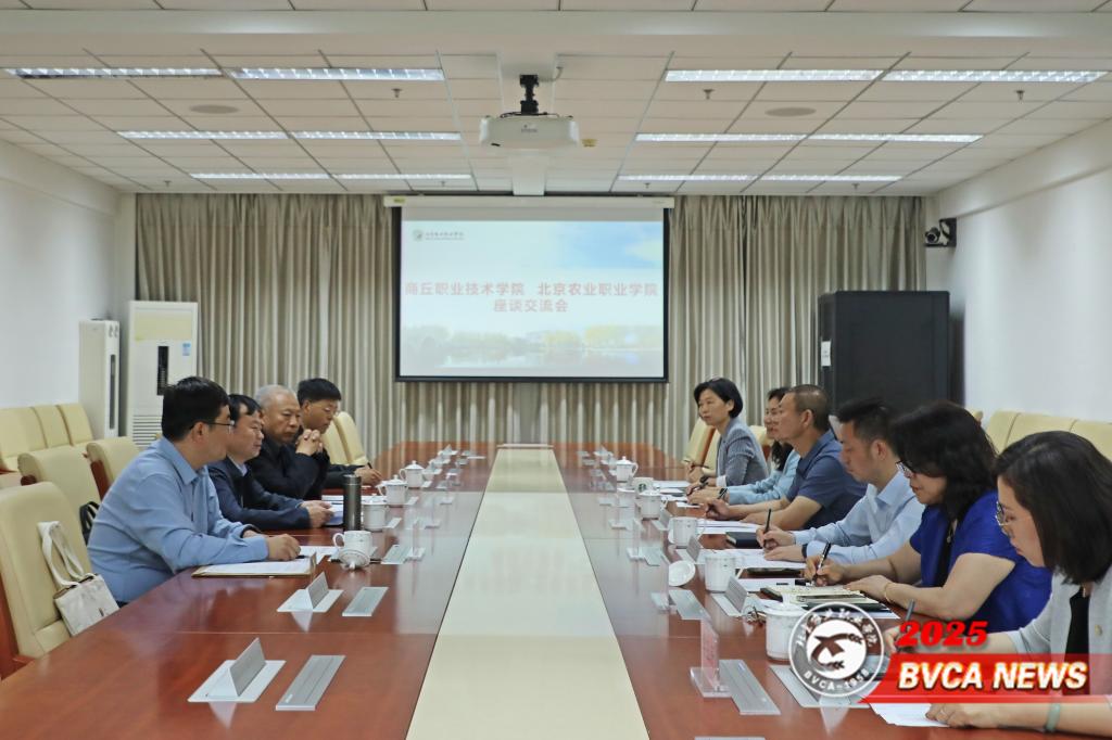 5月15日,商丘职业技术学院党委书记、校长薛明志率相关职能处室负责人一行4人来beat365调研交流。党委书记周志成出席座谈交流,党委常委、副院长张晓辉主持召开座谈会。