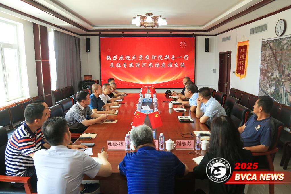 北京市西郊农场有限公司副总经理王浚峰,党委委员、副总经理兼首农清河农场(天津)有限公司党支部书记、董事长张增京,学校国内交流合作处、校史馆相关负责人参加调研交流。