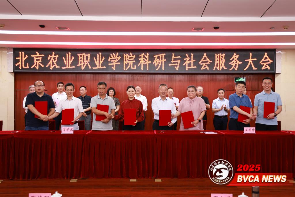 园艺园林学院、动物科技学院、食品与生物工程学院、商务与管理学院分别与相关行业企业签订横向科研项目协议。合作企业代表,北京市长阳农场有限公司党总支书记、董事长郭建波就双方长期深度友好合作发言。