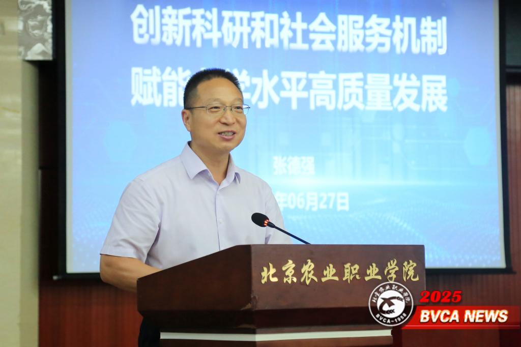 党委副书记、院长张德强作题为《创新科研社会服务机制赋能办学水平高质量发展》的主旨报告,全面回顾了“十四五”期间,学校以乡村振兴战略为指引在科研与技术服务、社会培训和国际合作交流三方面取得的显著工作成效;同时指出当前在科研机制、培训制度等方面的不足;重点部署了“十五五”期间推动科研与社会服务高质量发展的七大任务,明确以科研与社会服务为双轮驱动,赋能办学水平高质量发展的实践路径。报告以“数据支撑”彰显成就,以“问题导向”剖析短板,以“战略思维”描绘蓝图,明确了学校科研与社会服务工作发展的目标。
