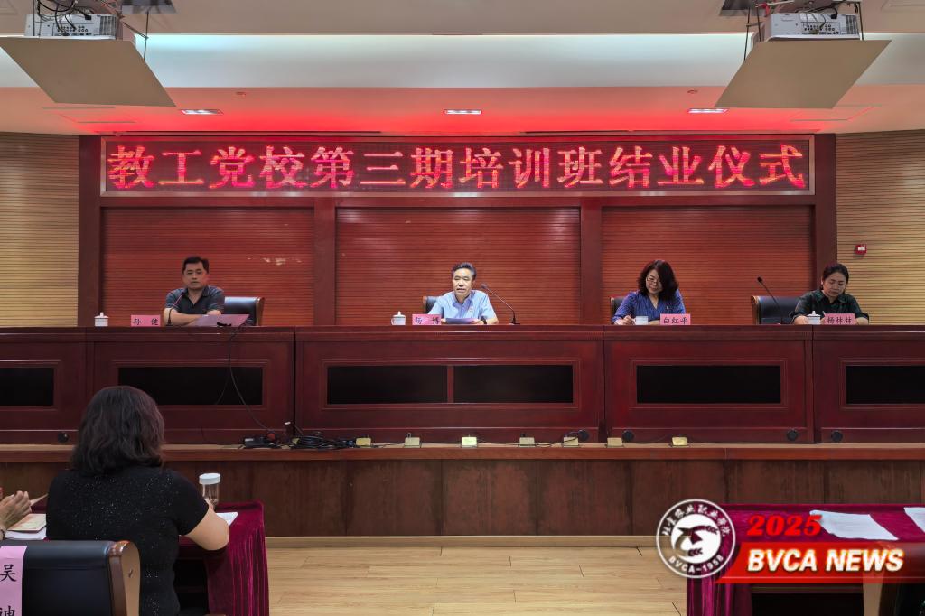 7月4日下午,教工党校第三期培训班结业式在长阳校区培训中心多功能厅举行,党委常委、副院长杨博出席并讲话,人事处处长白红平、副处长杨林林出席结业式,结业式由人事处副处长孙健主持。