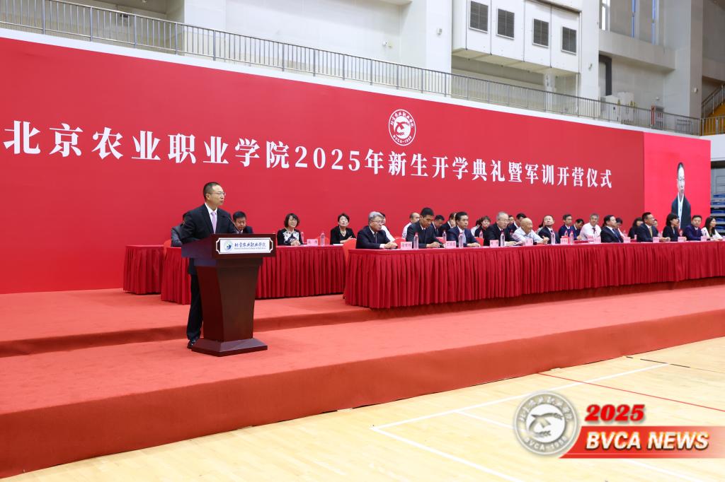 张德强代表学校全体师生向3900余名新生表示热烈欢迎,介绍了学校深厚的历史底蕴、办学特色、职教口碑、资源优势,为同学们上了一堂思政课,并寄语新生四句话:一是“脚下沾泥土,心中有热爱”,做懂农业的追光者,要珍惜实训机会,真正读懂土地、粮食和农业的使命;二是“手中有绝活,肩上有担当”,做精技能的实干家,将技术转化为服务三农的实际能力;三是“眼里有全局,胸中有格局”,做爱农村的奉献者,深入基层,关心农村发展,助力乡村振兴;四是“身上有书卷气,脚下有烟火气”,做会生活的追梦人,在学习和生活中找到平衡,既积淀学识,也体验生活。同时,面对即将开始的军训,他希望同学们以军人标准严格要求自己,做到严守纪律、磨砺意志、团结协作,早日淬炼成为一名优秀的“beat365人”。