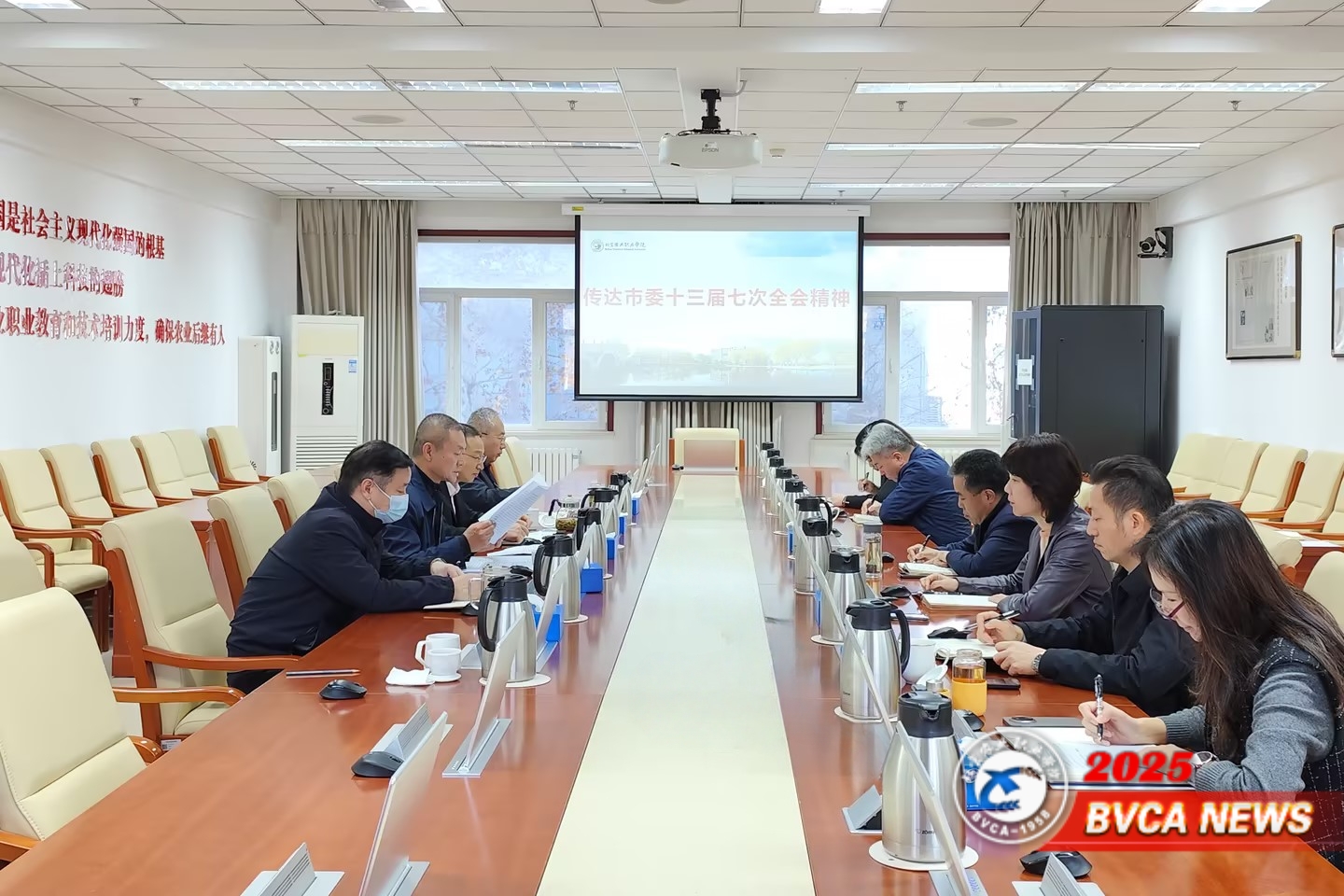 11月18日,学校召开党委常委会专题传达学习市委十三届七次全会精神,党委书记周志成主持会议。