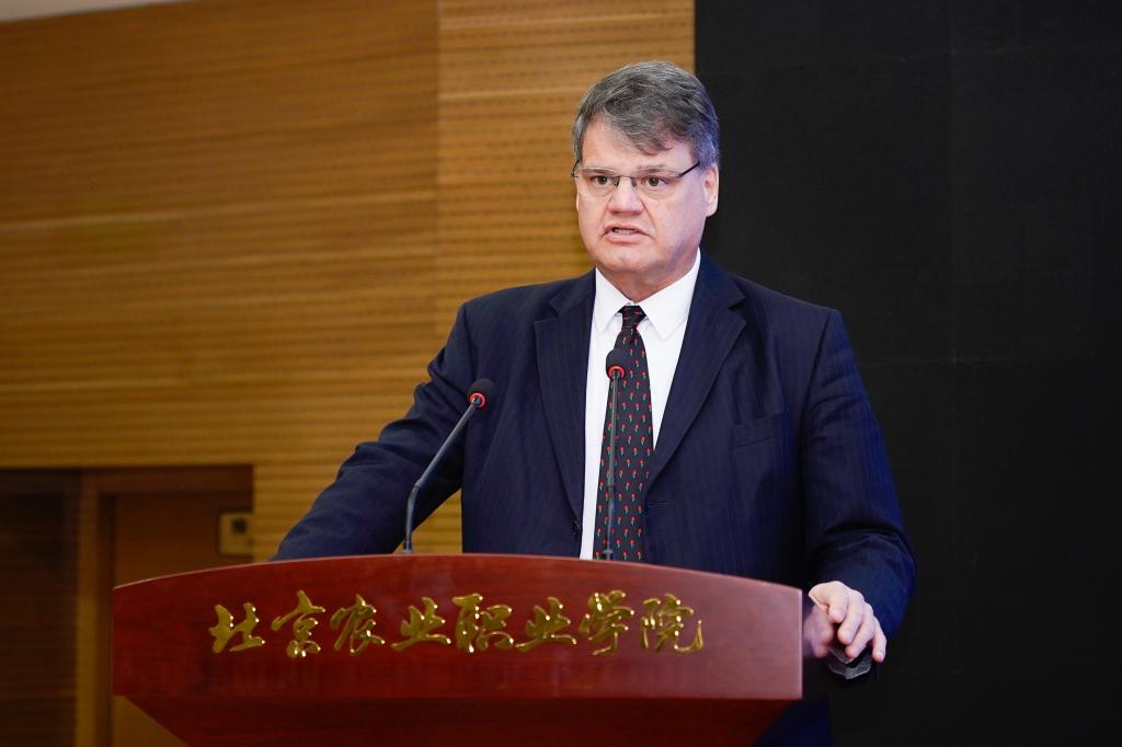 张德强回顾了学校与荷兰朗蒂斯教育集团共建“中荷都市农业职业教育交流中心”的合作历程,提出以数智化与国际化双轮驱动高技能人才培养;深化中荷教育资源共建与课程协同开发;推动花艺绿色化、品牌化、国际化发展三点倡议。