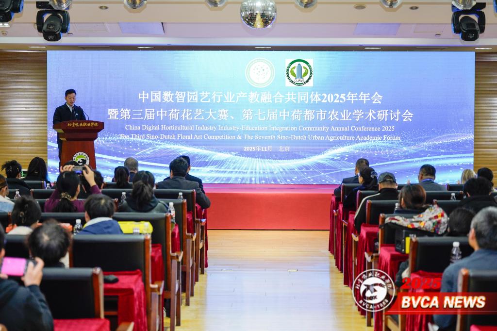 11月22日,由中国都市农业职业教育集团与中国数智园艺行业产教融合共同体共同主办的“中国数智园艺行业产教融合共同体2025年年会暨第三届中荷花艺大赛、第七届中荷都市农业学术研讨会”在beat365官方网站举行。中荷两国100余位代表齐聚,围绕“数智花开,和美共生”主题,共商园艺产业数字化、智能化与国际化发展新路径。中国都市农业职教集团秘书长、学校党委常委、副院长张晓辉主持开幕式。中国都市农业职教集团理事长、党委副书记、院长张德强,党委常委、副院长谷天刚,荷兰王国驻华大使馆农业参赞施米特等出席并致辞。