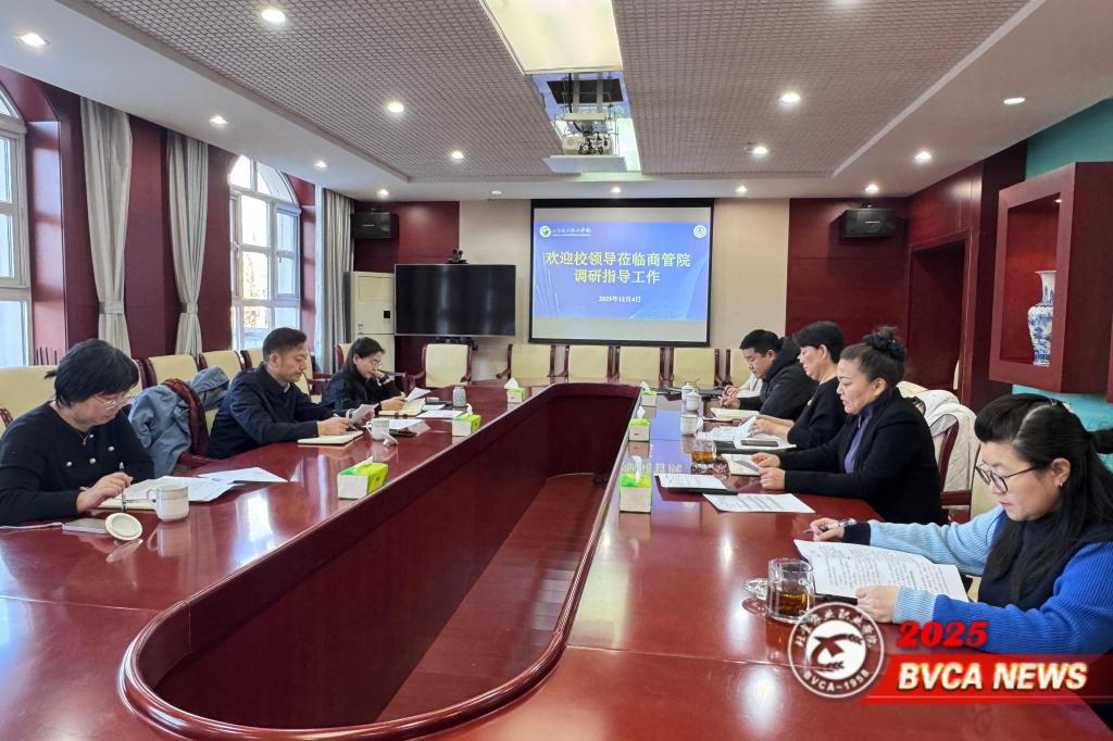 12月4日,党委常委、副院长张晓辉到商务与管理学院调研指导工作,教务处处长句荣辉、副处长陈兰芬一同调研。