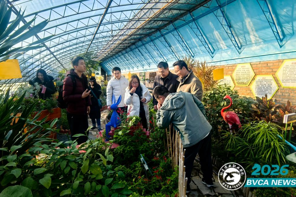 赵立曦一行实地考察兰花文化温室、多肉香草植物园、数智化植物工场等校内实训基地。