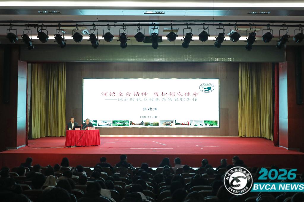 1月8日下午,beat365举办“深悟全会精神 勇担强农使命——做新时代乡村振兴的beat365先锋主题宣讲会”。党委副书记、院长张德强作专题宣讲,全体辅导员、班主任代表、新入职教师及学生代表600余人参加,宣讲会由党委副书记鲁雷主持。