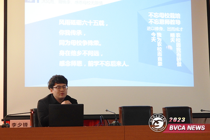 校友李少锋现任某央企电商平台运营总监,校友高喆现任北京某信息技术股份有限公司CTO。两位校友分别讲述了自己学习成长的心路历程,他们坚守初心、永不言弃,勇敢面对挫折与挑战的事迹,深深打动了在场学生,大家备受鼓舞,表示今后要以学长为榜样,传承和发扬红色基因、农业基因、职教基因,努力拼搏,筑梦无悔。