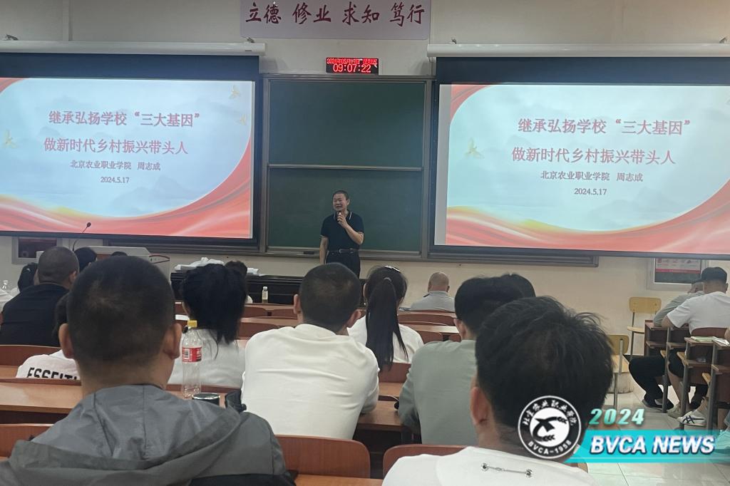 为贯彻落实习近平总书记关于思政课建设的重要指示精神,5月17日,党委书记周志成以《继承弘扬学校“三大基因” 做新时代乡村振兴带头人》为专题,为村务管理专业学生讲授思政课。周志成从学校建校历史讲起,系统梳理了学校发展历程以及凝结其中的红色基因、农业基因、职教基因。特别号召同学们,要努力学习,加强乡村治理研究,锚定建设农业强国目标,不断提升乡村治理能力水平。